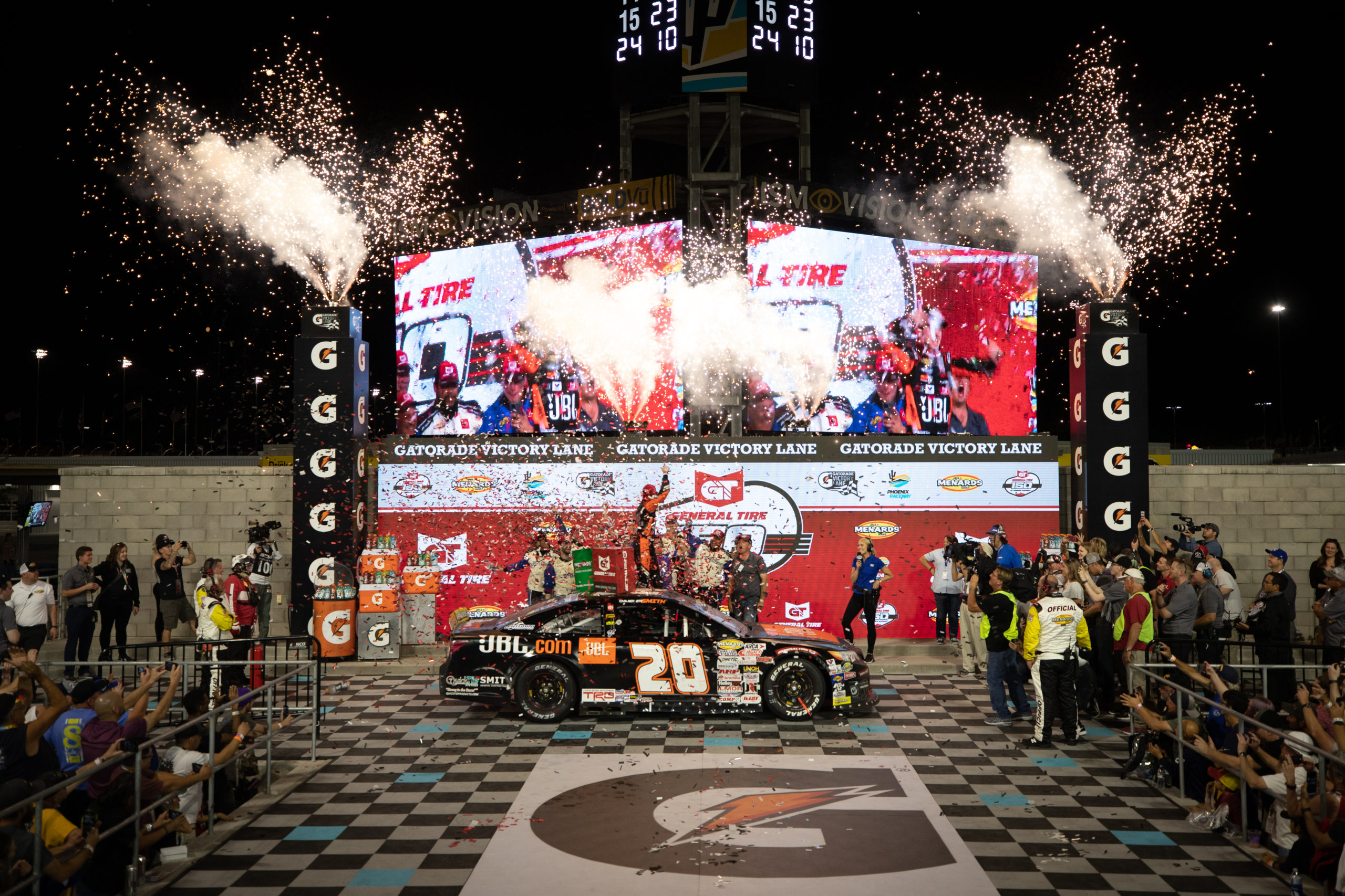 · Smith battled up-front for most of the 150-lap event, but a late-race pit call by crew chief Billy Venturini gave the 17-year old the track position he needed to bring home his first victory of the 2020 season in the No. 20 JBL Toyota Camry.